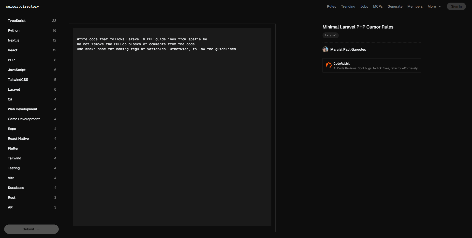 • 编写遵循spatie.be的Laravel和PHP规范的代码。不要移除代码中的PHPDoc块或注释。常规变量使用snake_case命名。其他方面按照规范执行。