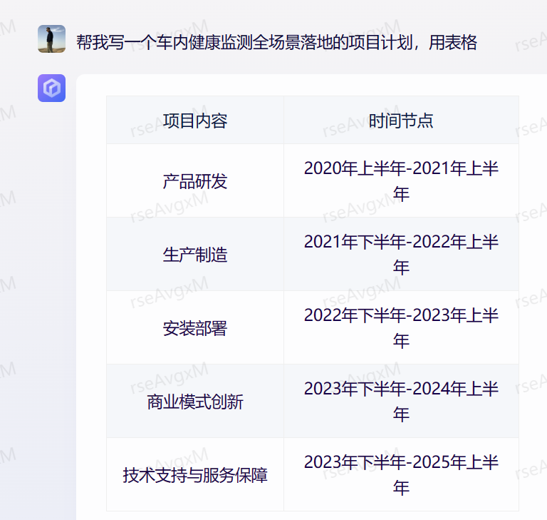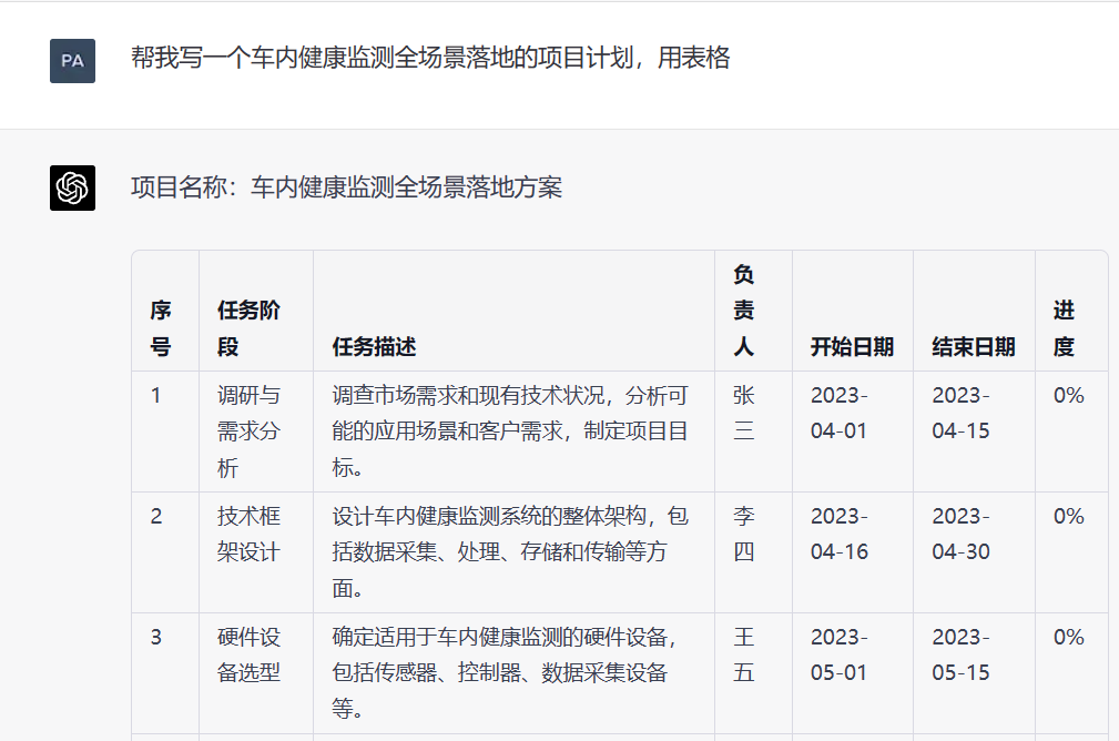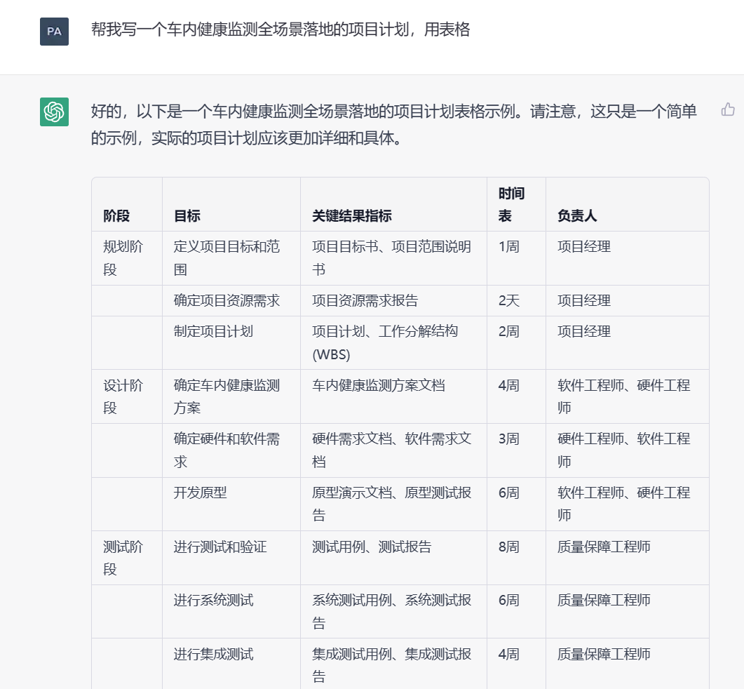• 帮我写一个车内健康监测全场景落地的项目计划,用表格