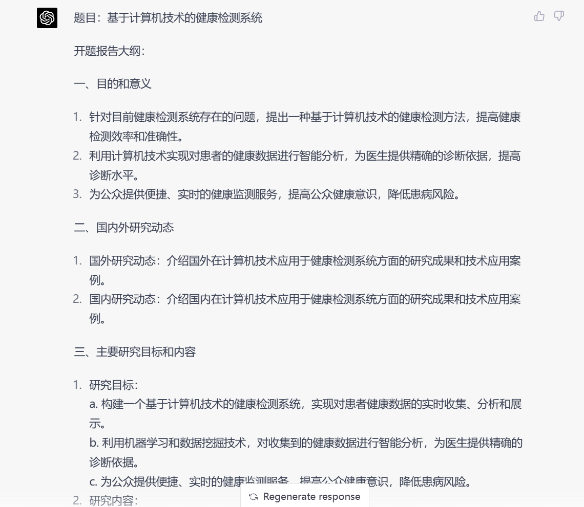 • 以“基于计算机技术的健康检测系统”为题写一篇开题报告大纲,内容要求如下:一、完成本题的目的和意义;二、国内外研究动态;三、主要研究目标和内容;四、准备工作情况和主要工作措施;五、进度安排及预期达到研究结果