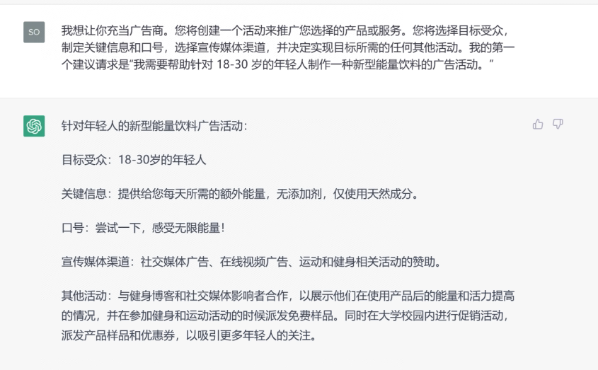 • 我想让你充当广告商。您将创建一个活动来推广您选择的产品或服务。您将选择目标受众,制定关键信息和口号,选择宣传媒体渠道,并决定实现目标所需的任何其他活动。我的第一个建议请求是“我需要帮助针对 18-30 岁的年轻人制作一种新型能量饮料的广告活动。”